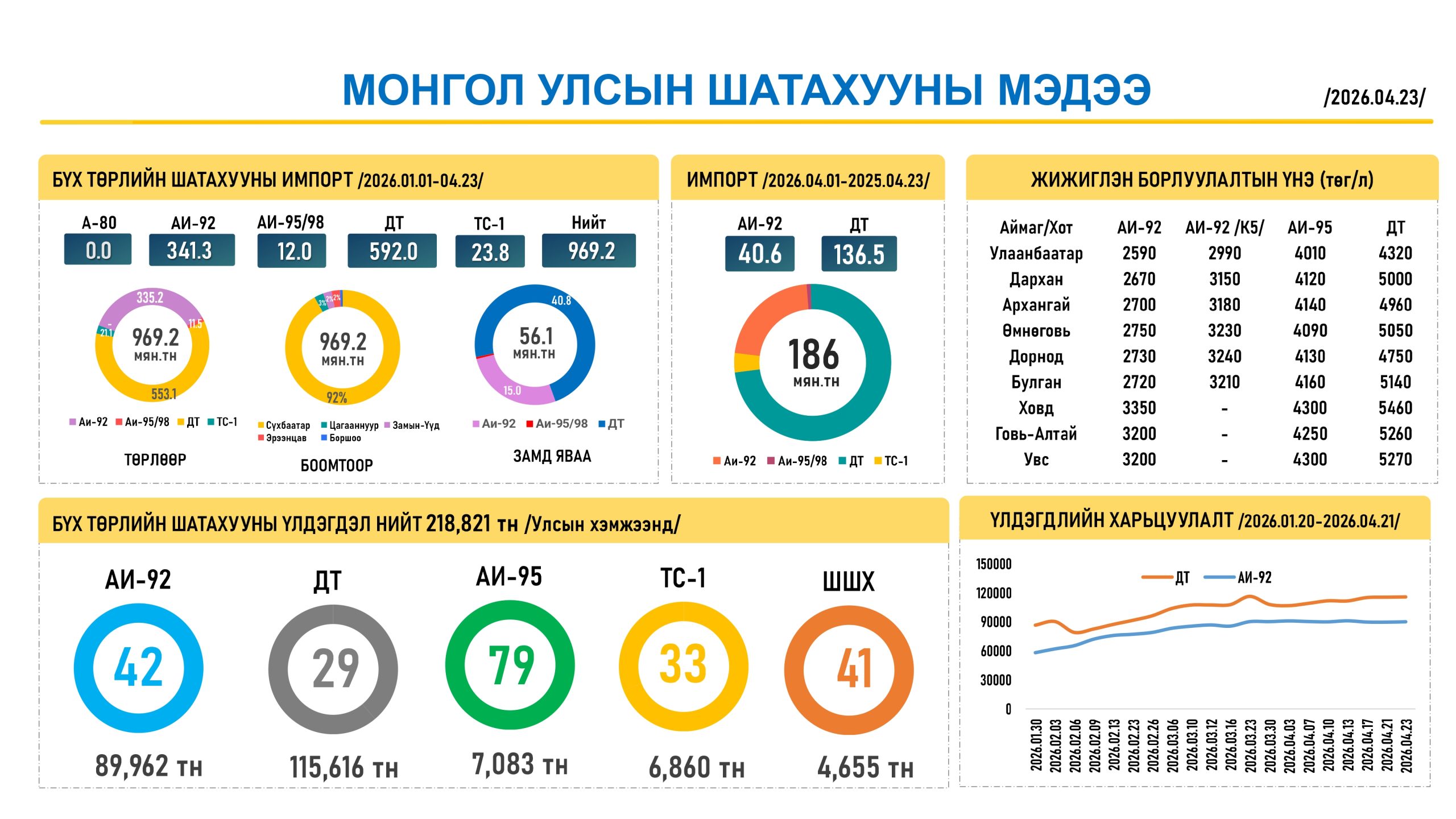 - ЕВРО-5 СТАНДАРТЫН БҮТЭЭГДЭХҮҮНИЙГ ТОГТВОРТОЙ НИЙЛҮҮЛЭХЭЭР ТОХИРОЛЦЛОО 2026-04-20