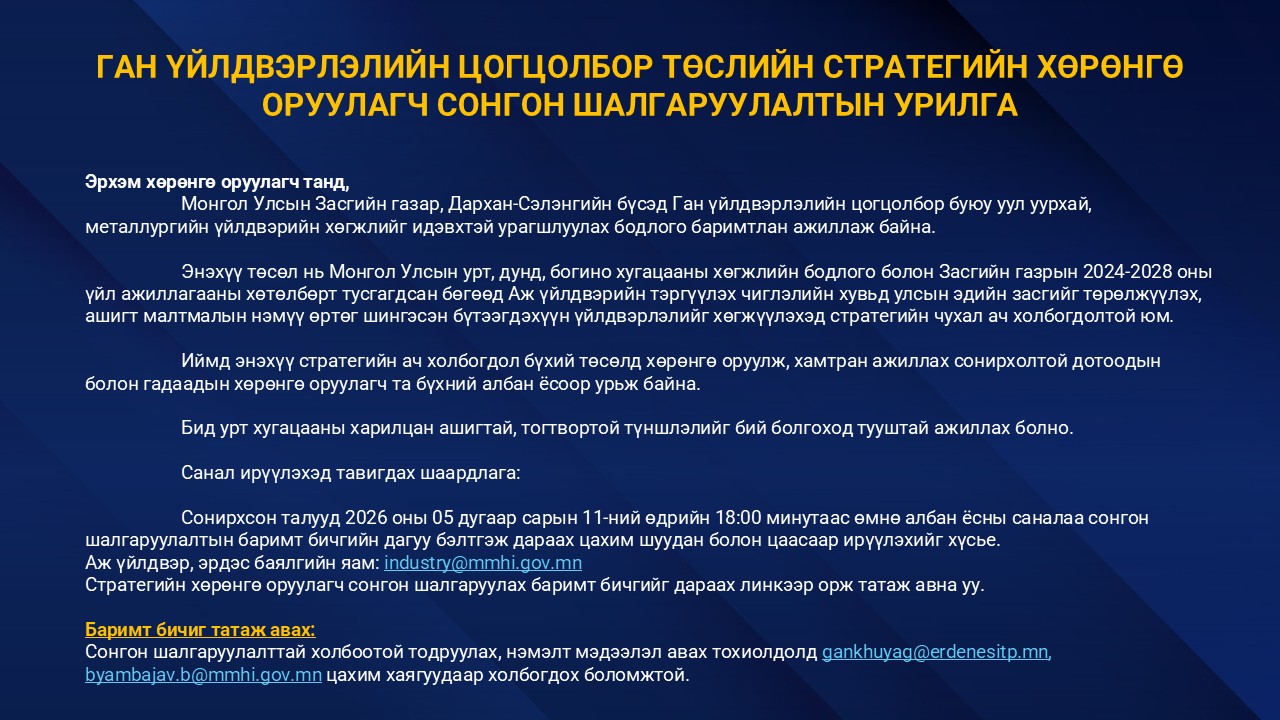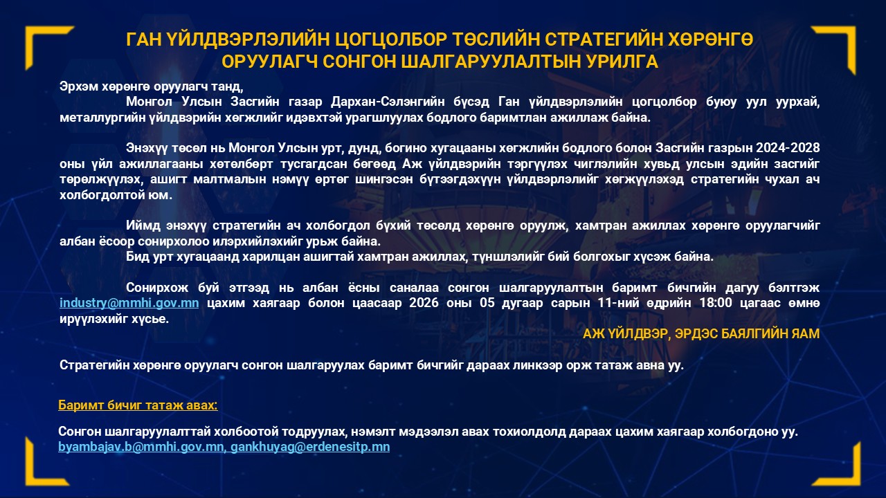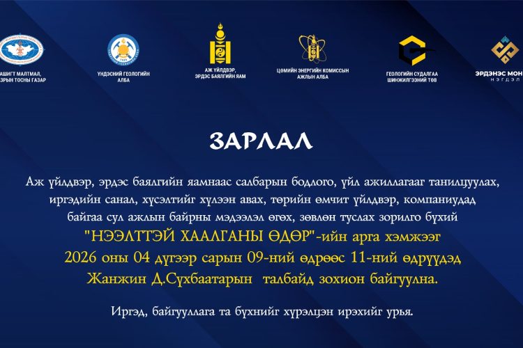- АЖ ҮЙЛДВЭР, ЭРДЭС БАЯЛГИЙН САЙДААР ГОНГОРЫН ДАМДИННЯМ УЛИРАН ТОМИЛОГДЛОО 2026-04-06