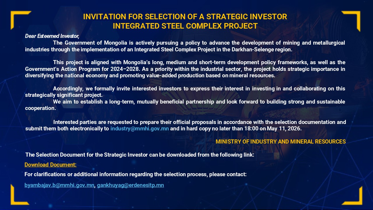 Канад Улсын Торонто хотноо болж буй PDAC-2026 олон улсын чуулга уулзалтын хүрээнд АҮЭБЯ, МУУҮА, Канад Монголын худалдааны танхим хамтран Монгол Улсын уул уурхайн салбарын олон улсын хамтын ажиллагааг өргөжүүлэх, хөрөнгө оруулалтын боломжийг нэмэгдүүлэх, стратегийн төслүүдийг сурталчлах “Mongolia Day 2026” арга хэмжээг зохион байгууллаа. Арга хэмжээг Монголын уул уурхайн ассоциацийн Зөвлөлийн дарга Г.Батцэнгэл, Канад Улсад суугаа […]