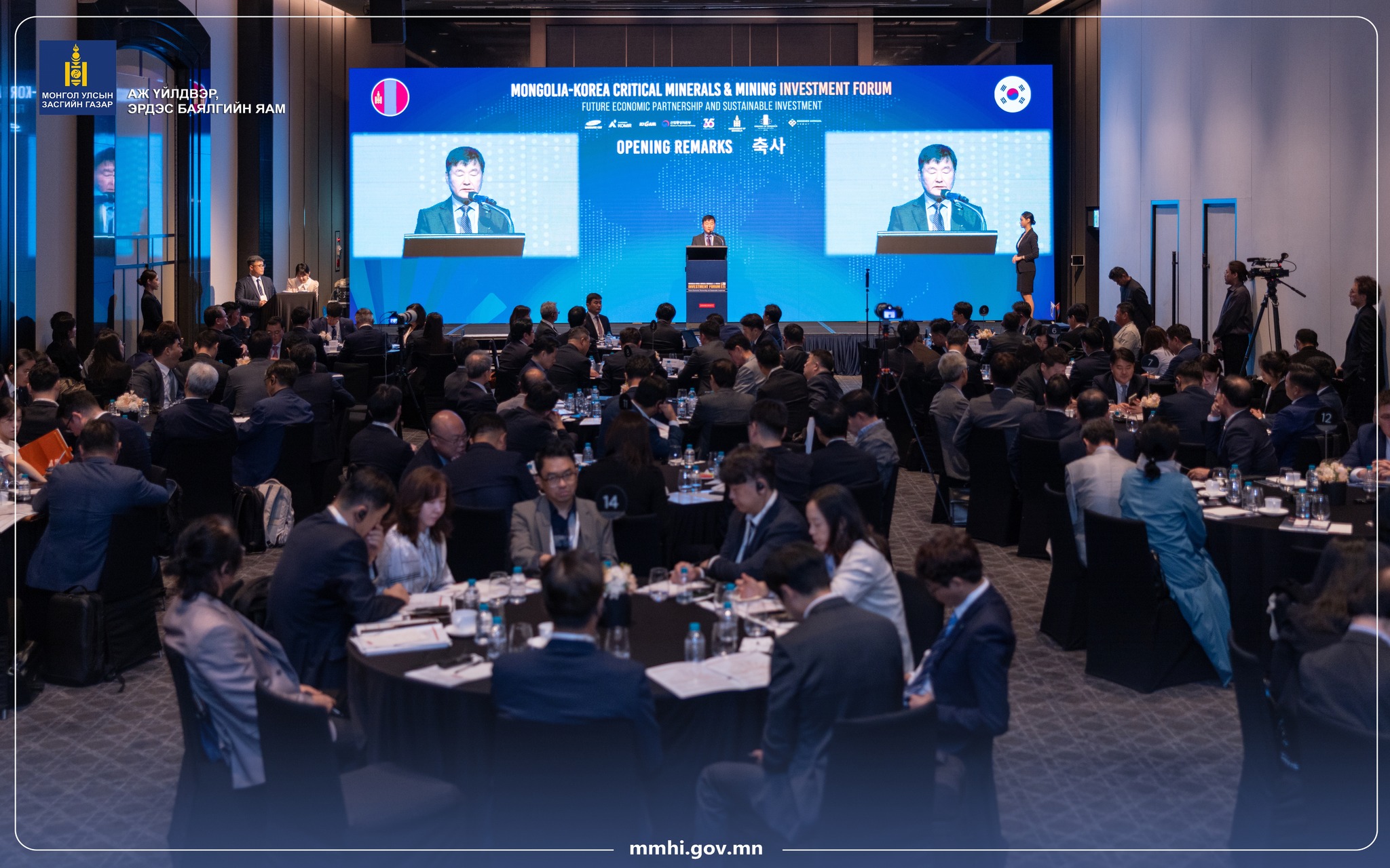 Монгол Улсаас БНСУ-д суугаа Элчин сайдын яамнаас санаачлан Монгол Улсын Аж үйлдвэр, эрдэс баялгийн яам, Эдийн засаг хөгжлийн яам, “Эрдэнэс Монгол” нэгдэл болон БНСУ-ын холбогдох байгууллагууд хамтран “Mongolia–Korea Critical Minerals and Mining Investment Forum 2025” арга хэмжээг БНСУ-ын Сөүл хотод зохион байгуулж байна.