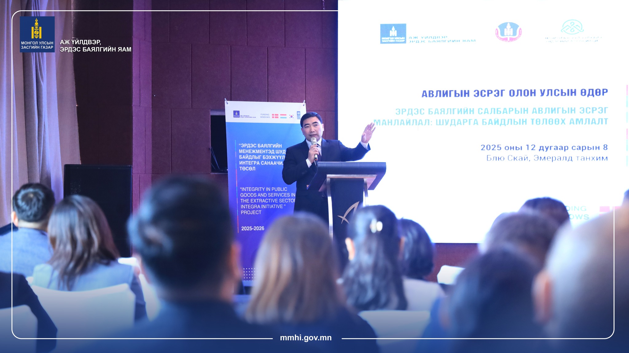 “Авлигын эсрэг олон улсын өдөр”-ийг угтан Аж үйлдвэр, эрдэс баялгийн яамнаас санаачилж, Авлигатай тэмцэх газар болон НҮБ-ын Хөгжлийн хөтөлбөртэй хамтран “Эрдэс баялгийн салбарын авлигын эсрэг манлайлал, шударга байдлын төлөө амлалт” арга хэмжээг өнөөдөр (2025.12.08) зохион байгууллаа.