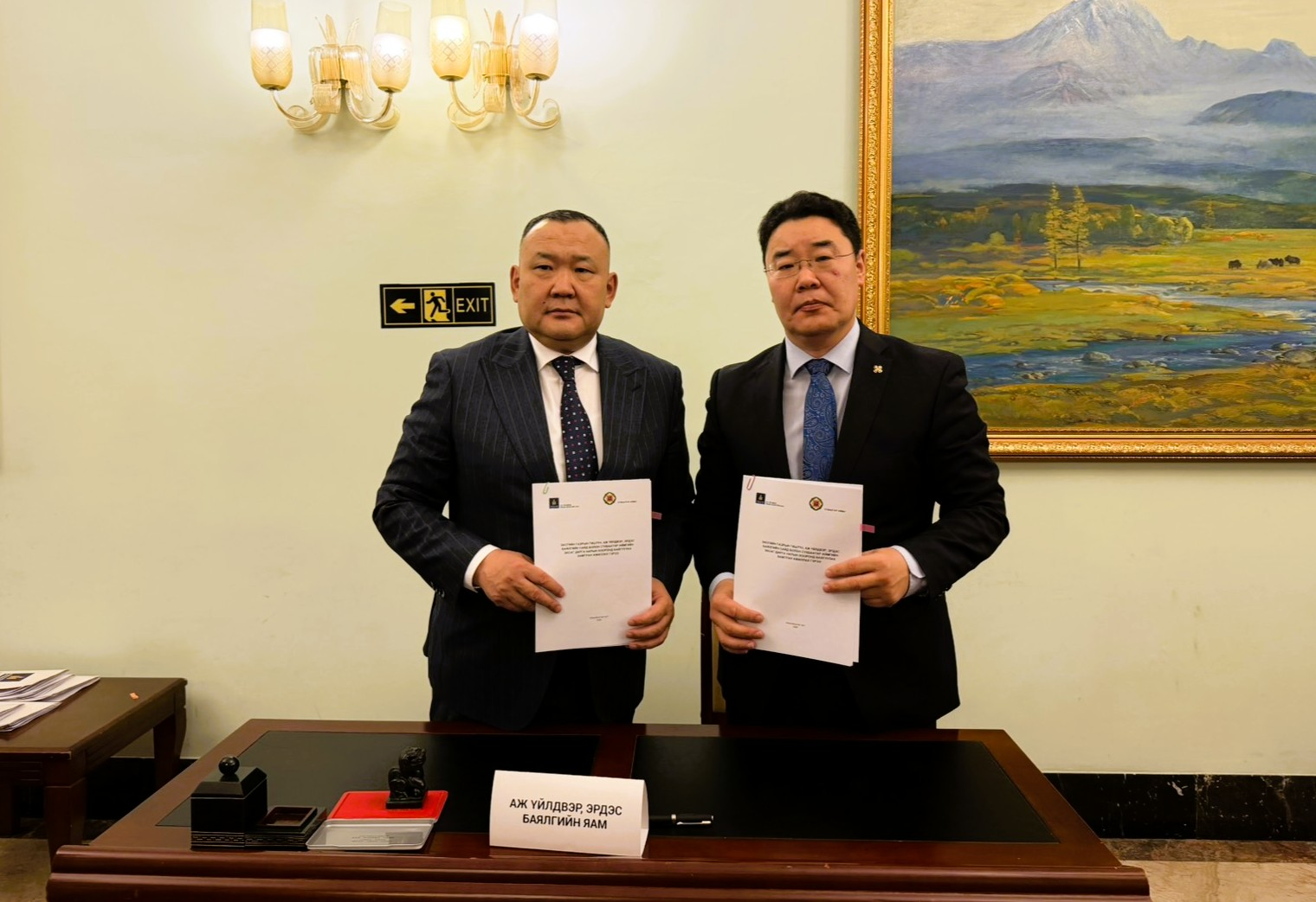 АЖ ҮЙЛДВЭР ЭРДЭС БАЯЛГИЙН ЯАМНААС АЙМАГ, НИЙСЛЭЛИЙН ЗАСАГ ДАРГА НАРТАЙ ХАМТЫН АЖИЛЛАГААНЫ ГЭРЭЭ БАЙГУУЛЛАА