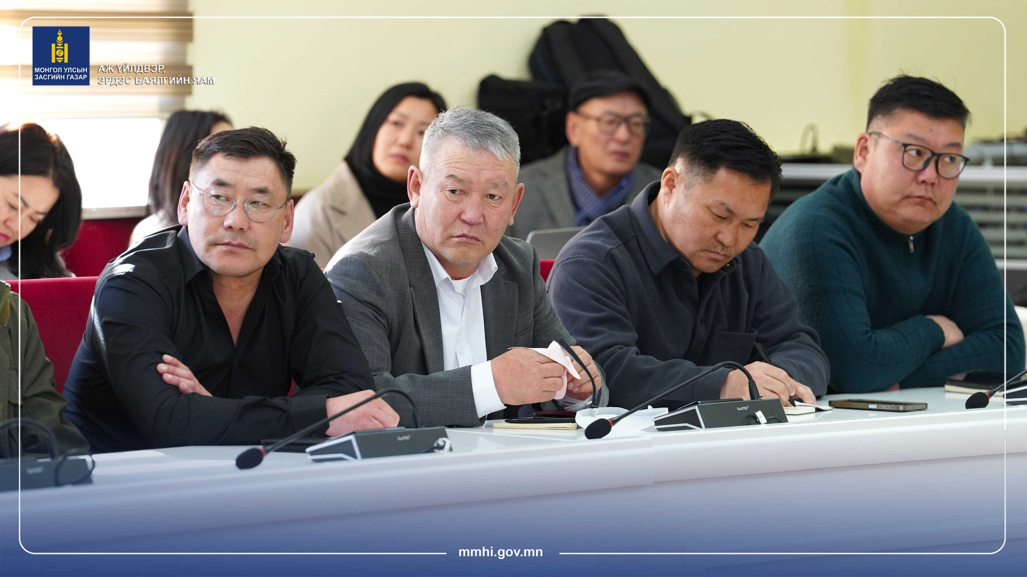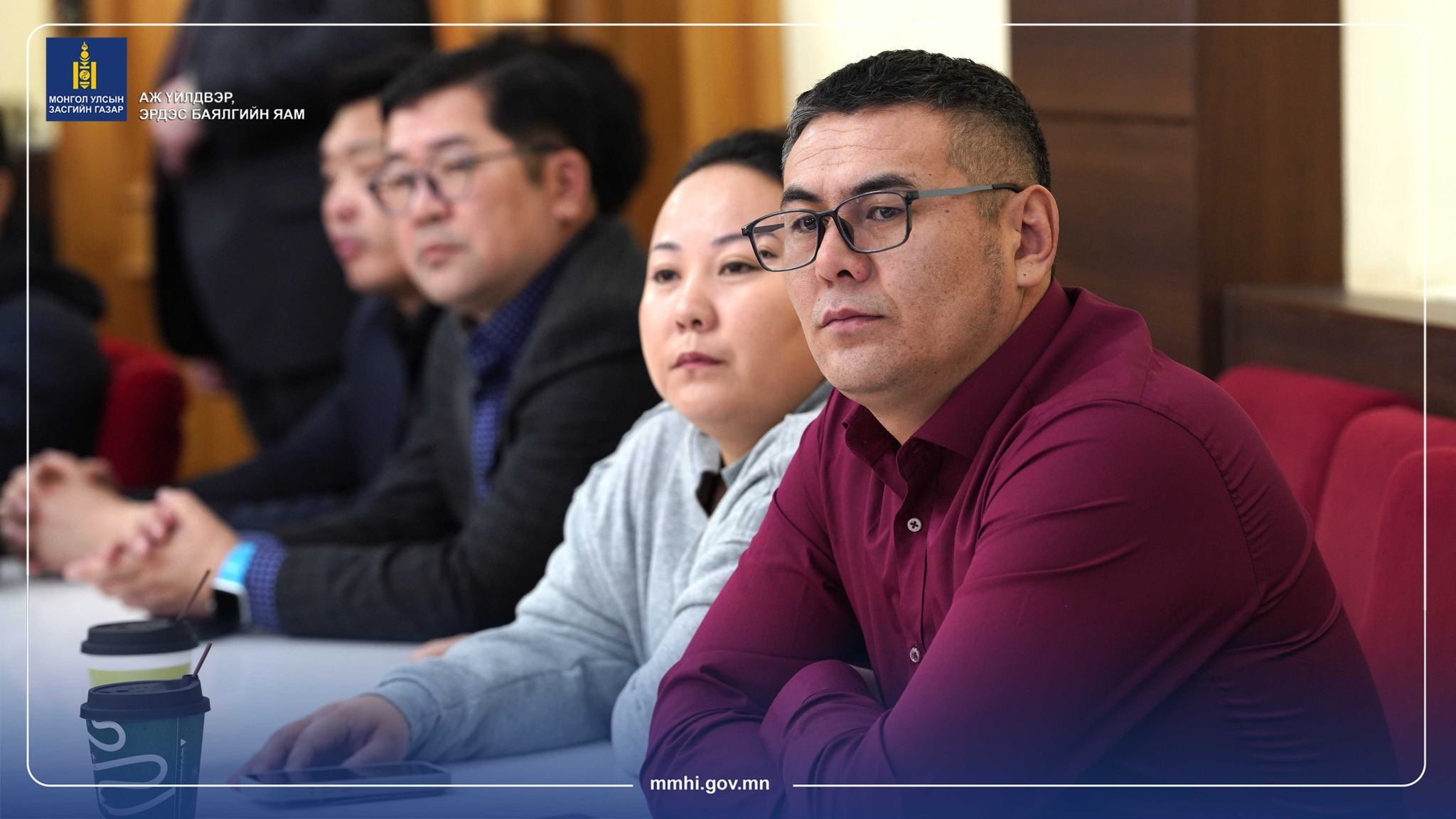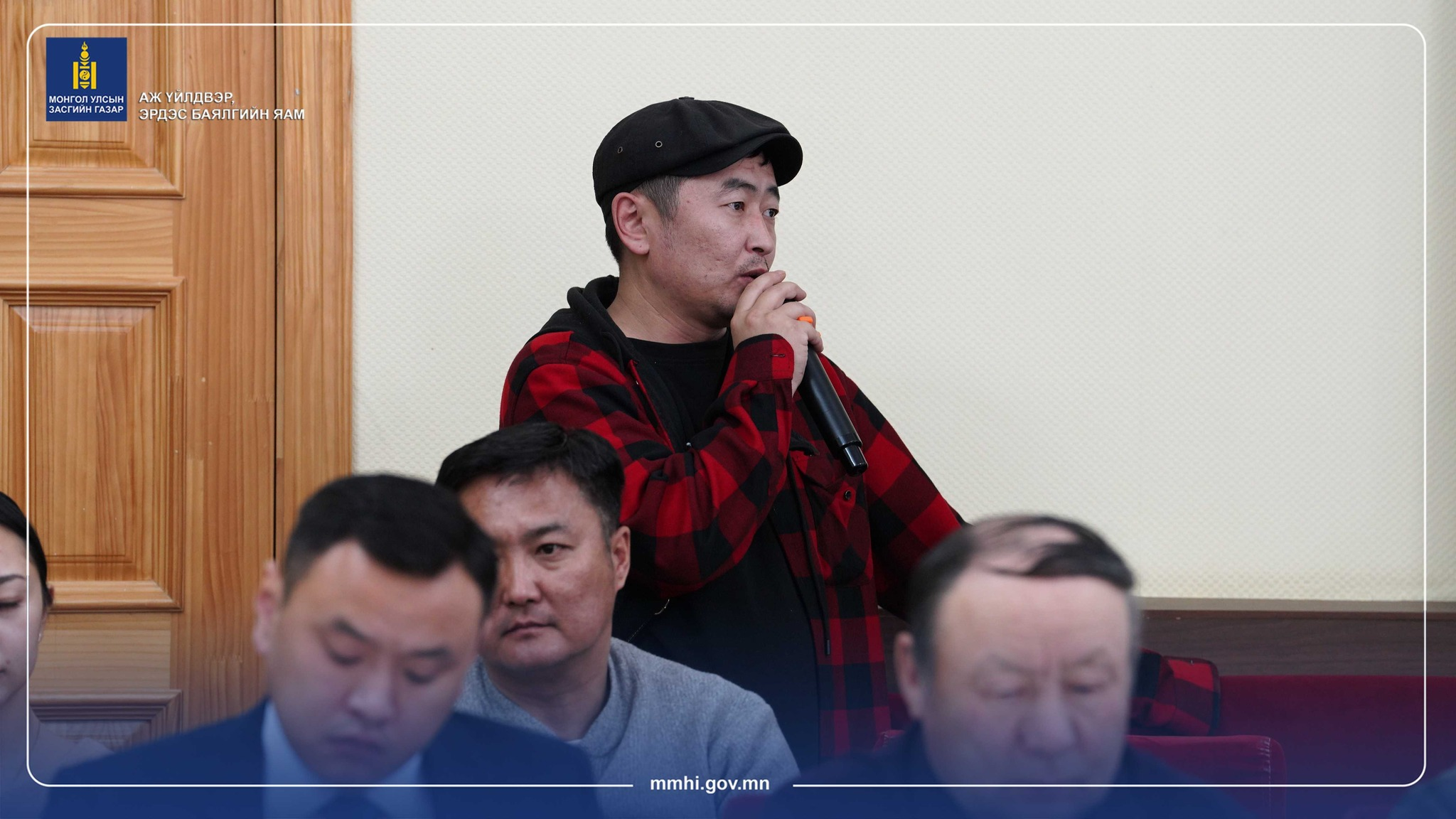 АҮЭБЯ-ны Хяналт-Шинжилгээ дотоод аудитын газар, БОУАӨЯ-ны Байгаль орчны улсын хяналтын газар, Ашигт малтмал, газрын тосны газрын хайгуул, ашиглалтын газар, Цагдаагийн ерөнхий газрын экологийн цагдаагийн алба, Тагнуулын ерөнхий газар, зэрэг төрийн байгууллагуудын удирдлага, төлөөллүүд оролцож эрдэс баялгийн чиглэлээр үйл ажиллагаа явуулдаг ААН, иргэдэд хуулийн болон хяналт шалгалтын мэдээлэл, зөрчил дутагдлыг арилгах талаар болон 2026 онд хийж хэрэгжүүлэх урьдчилан болон төлөвлөгөөт хяналт шалгалтын мэдээллийг танилцуулж хамтран санал солилцож байна.